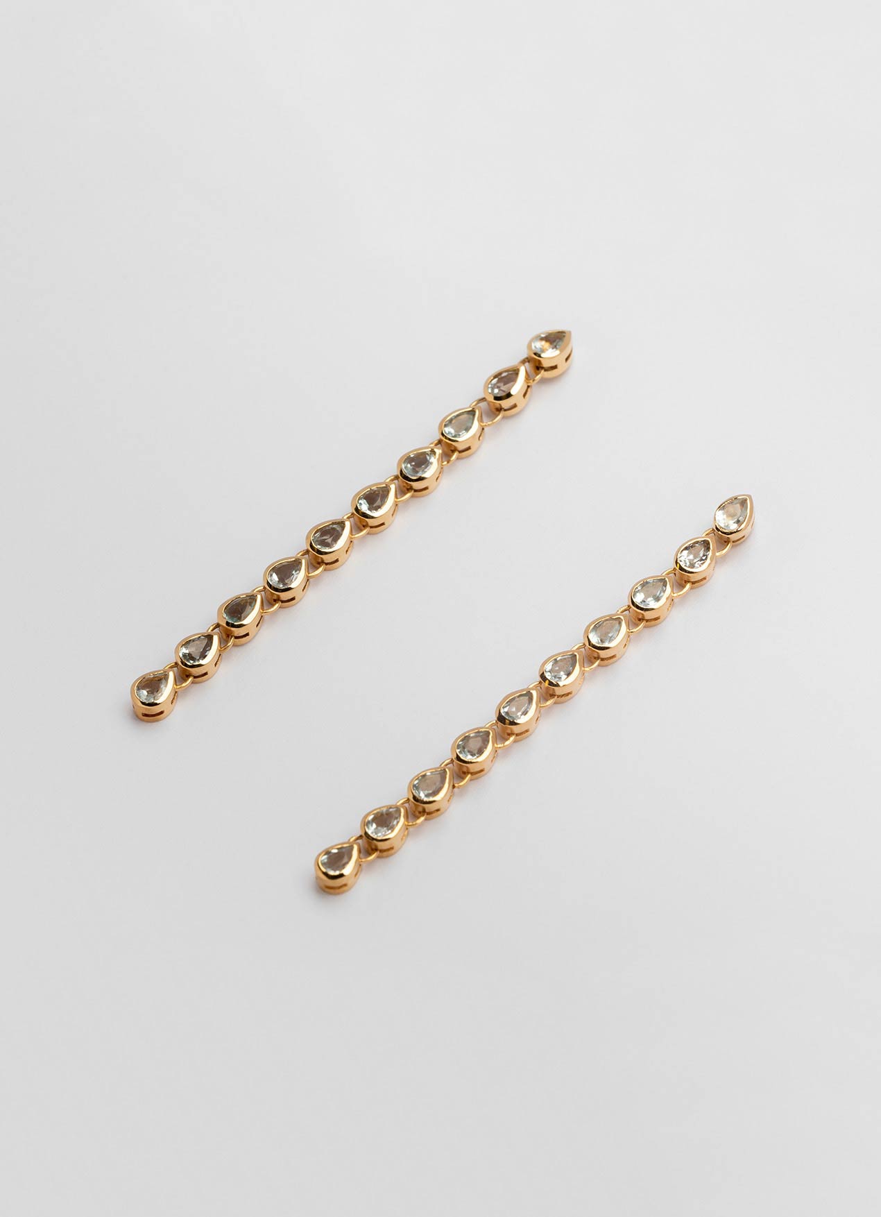 Los pendientes Drop in the Ocean forman una cascada de preciosos topacios que transmiten e inspiran la fuerza y libertad del agua. Al igual que el resto de nuestra colección de pendientes, son perfectos para novias pero también para el día a día.