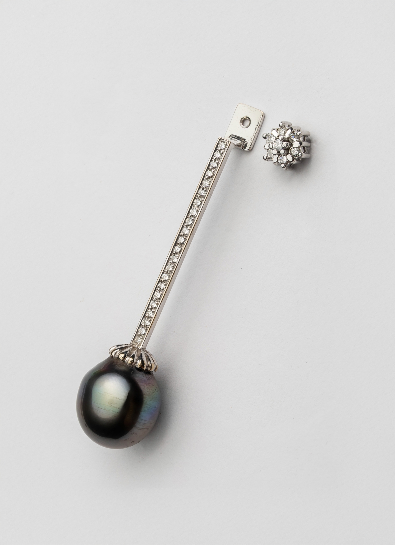 Unique and incredible detachable earrings made of 18k white gold, natural diamonds and Tahiti pearls. The perfect jewel for your wedding day but also the most stylish accessory to wear with jeans and a white shirt for a dinner out (or in!)
