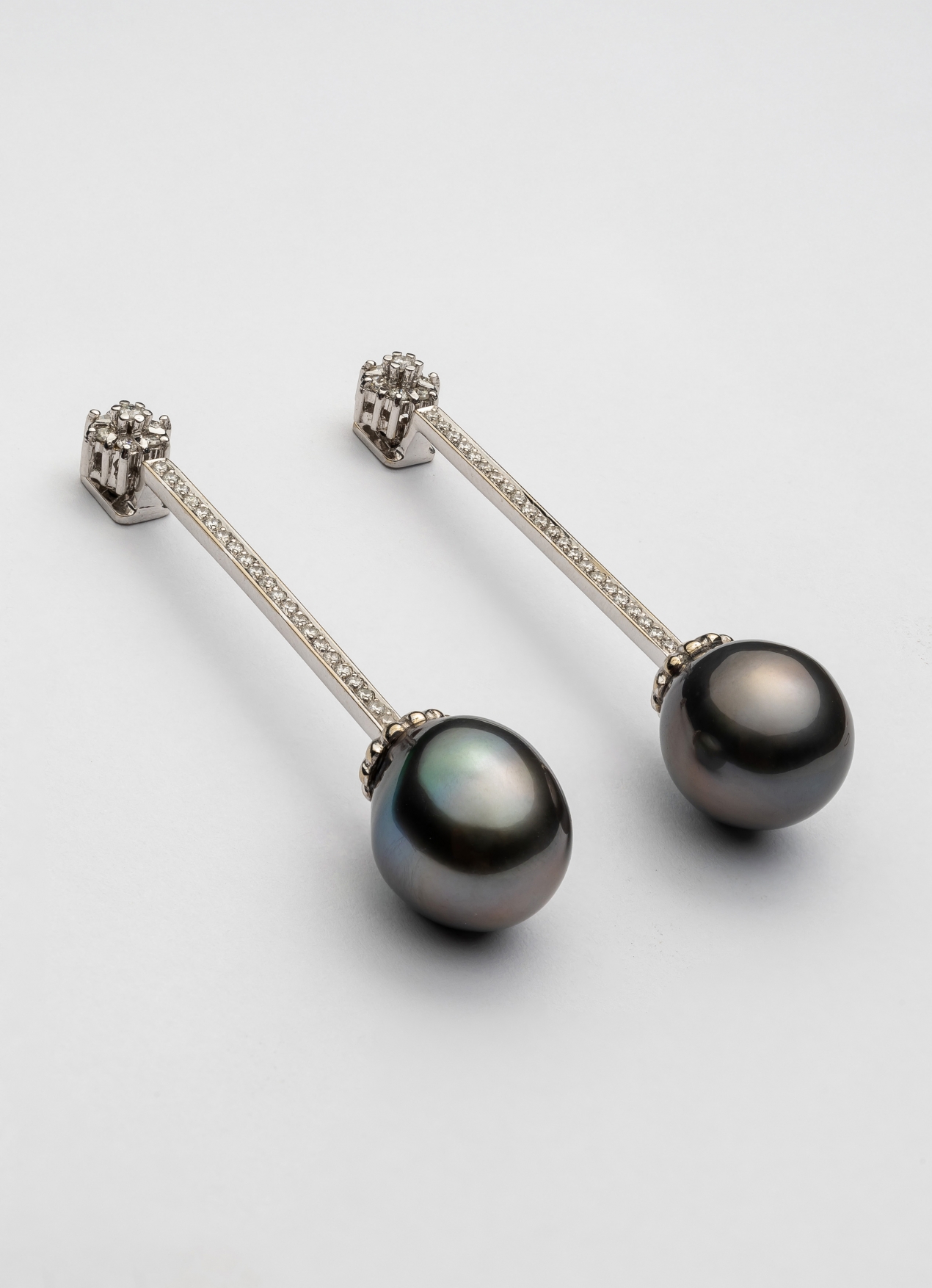 Increibles pendientes desmontables en oro blanco de 18 quilates, diamantes naturales y perlas Tahití. Perfectos para una novia que quiera llevar una joya especial y remarcable. Pero también perfectos para llevar a una cena con vaqueros y camisa blanca. Un tesoro único y delicado que tendrás para siempre.